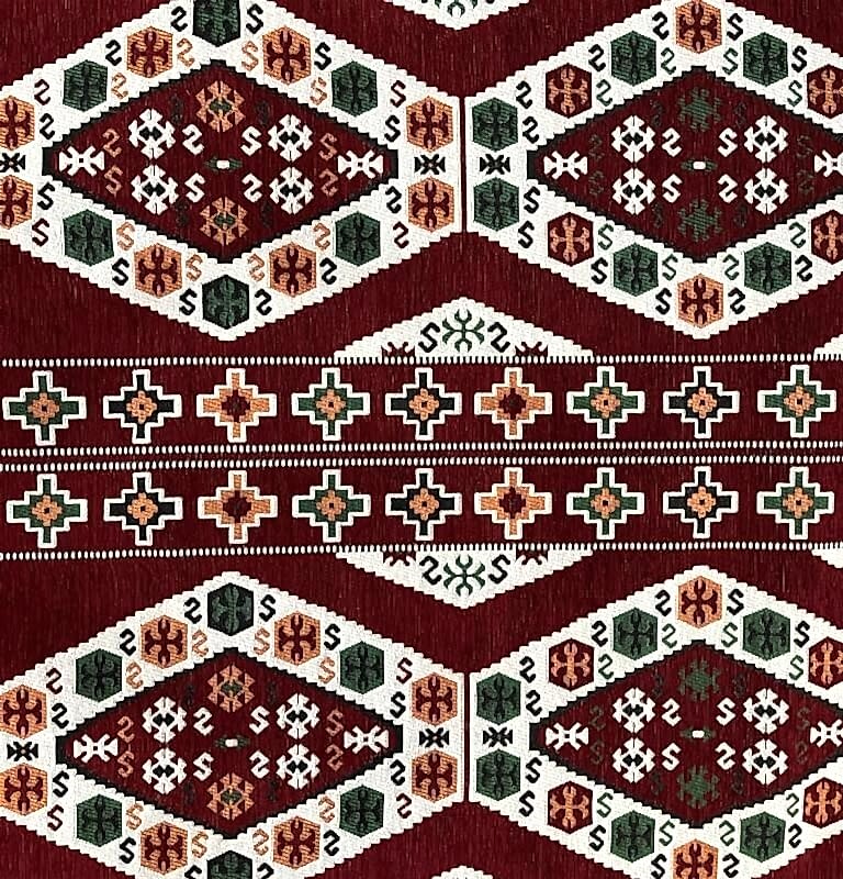 Yöresel motifli kilim desenli kumaşlarımız dokuma şönildir. 30 derecede yıkanabilir. Şark köşesi kumaşlarımızın eni 140 cm’dir. Metraj girerek sipariş oluşturabilirsiniz. Ürün minimum 3 maksimum 10 iş günü içinde kargoya verilir. 1000 TL ve üzeri alışverişlerinizde kargo ücretsizdir.